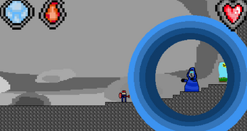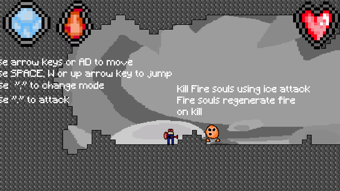 In game, you defeat fire and ice souls, fire souls with ice attack and ice souls with fire attack. There is a boss at the end and you can tell the way you can attack him by his eye color (red eyes - attack with ice etc.)